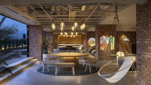 今回、私がこのハイボールを飲んだのは、「OMO 5 函館 by 星野リゾート」の「OMOベース」という、旅行者たちがくつろぐために設計された洗練された空間です。