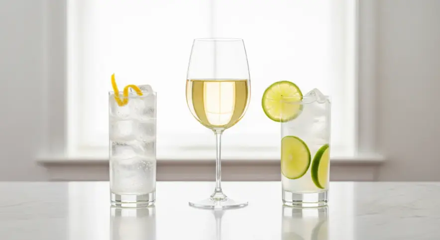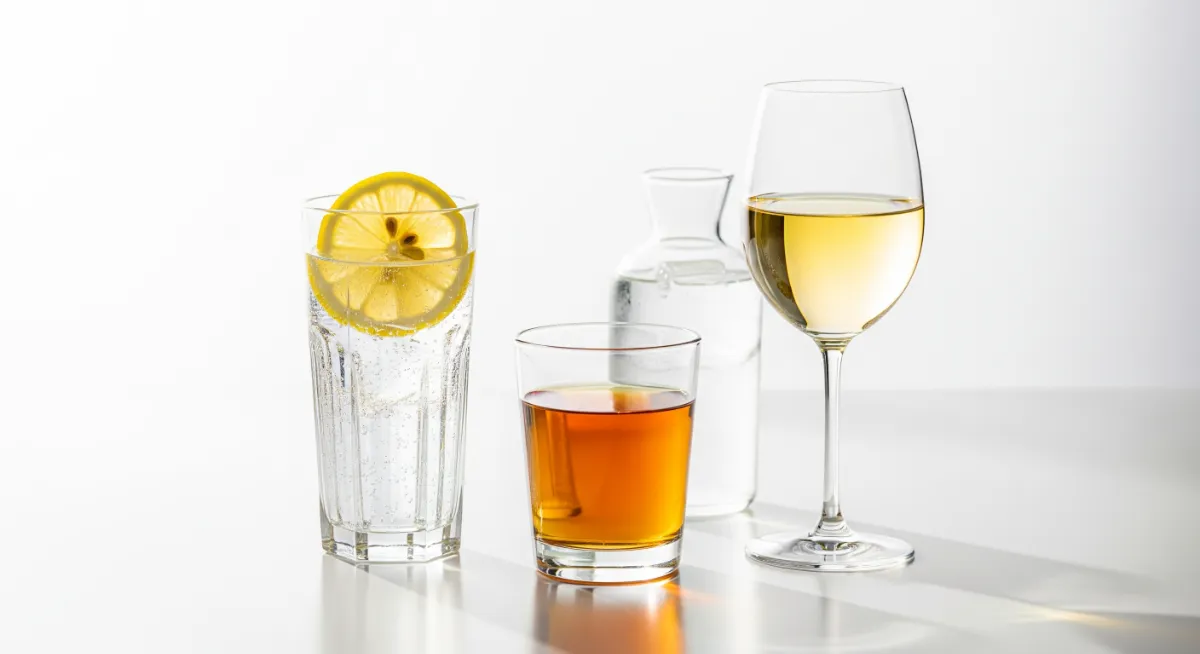 ウイスキーや焼酎を炭酸水で割る「ハイボール」、焼酎などを緑茶やウーロン茶で割る「お茶割り」、生のレモンを絞って炭酸水で割る「生搾りサワー(甘味料なし)」などがおすすめです。