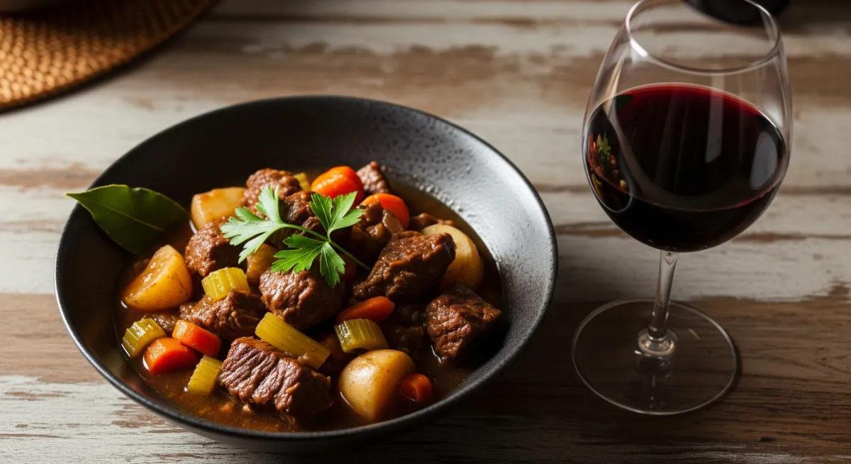 ビーフシチュー: ワインの果実味が肉の旨味を引き立てる